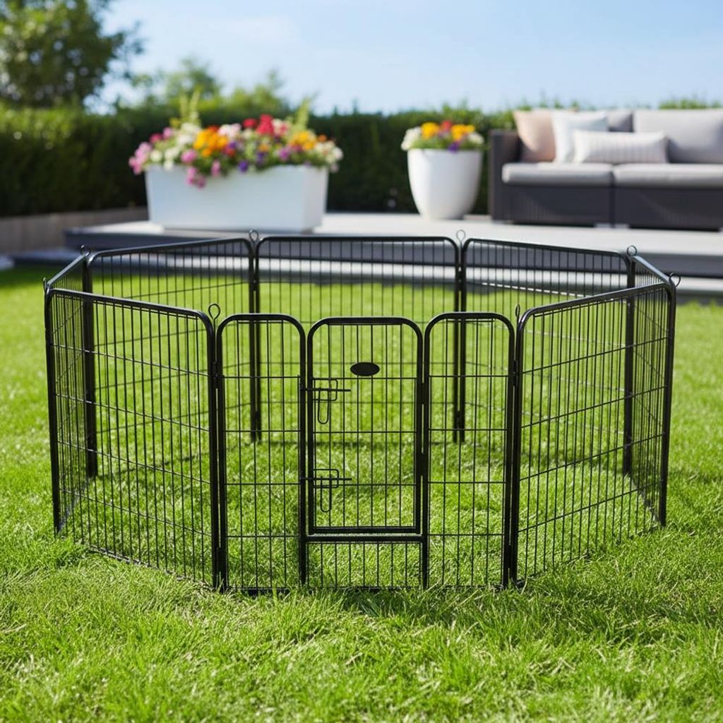 Yaheetech 8 teiliger Welpenauslauf Hundelaufstall 80 cm hoch, 8 mm verstärkte Metalldrähte, mit integriertem Schloss