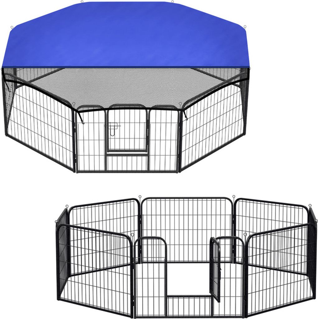 Welpenauslauf mit 8 Paneelen, 76 cm hoch, ca. 2,5 m², inklusive Boden- und Kombi-Dachplane