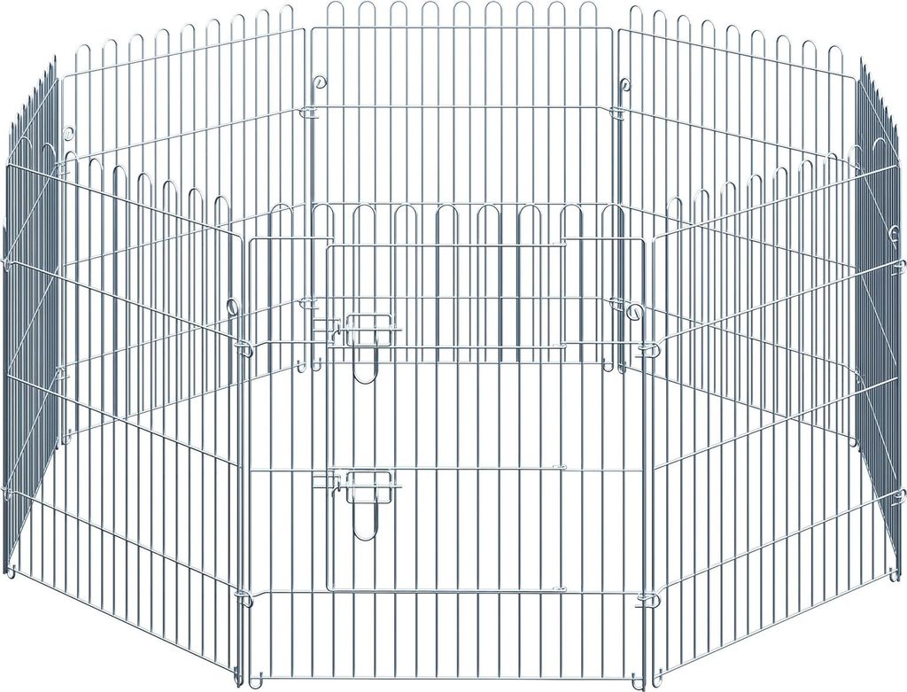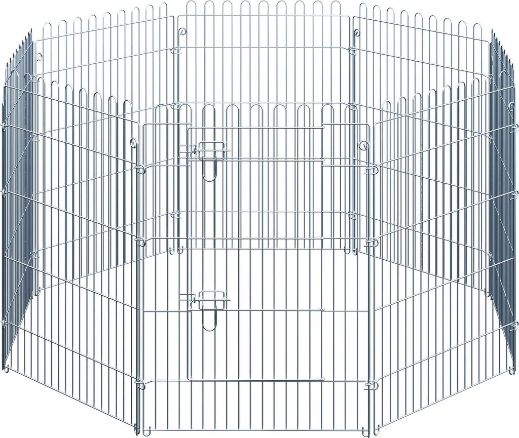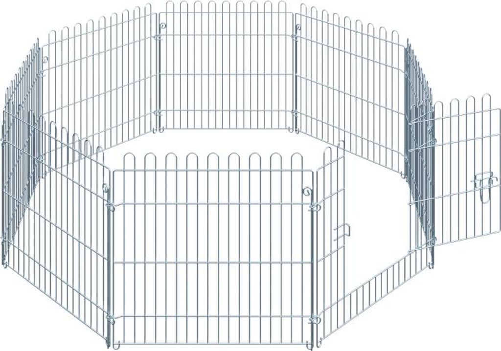 63x1x91 cm Silber Freilaufgehege Welpenauslauf 8-teilig Welpenzaun Laufstall Welpengitter Stahl