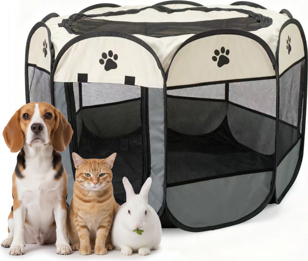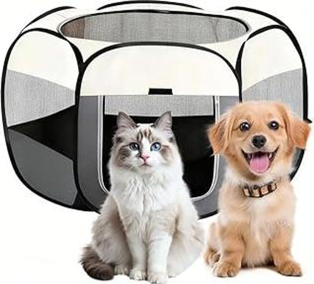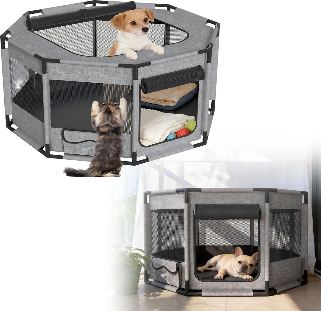 LZQ Welpenauslauf für Hunde & Katzen – 600D Oxford-Gewebe, atmungsaktive Netzfenster, stabil & faltbar, Indoor & Outdoor, tragbarer Hunde- & Kat...