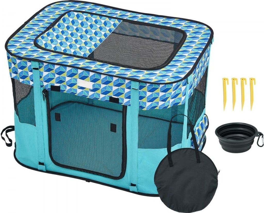 Welpenauslauf faltbar Türkis Tierlaufstall mit Tür & Tragegriff