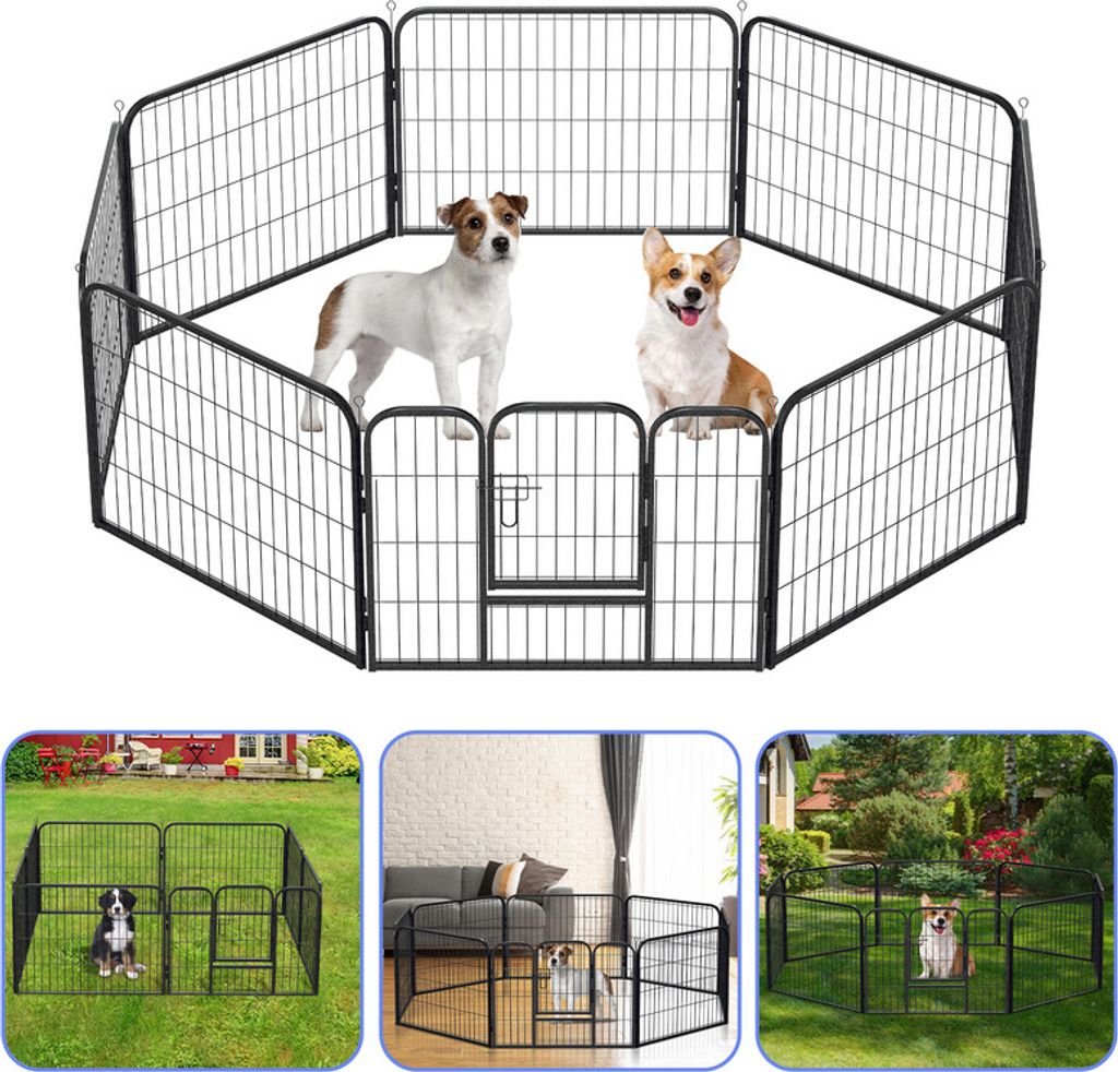 Welpenlaufstall, 8-teilig 100cm hoch Welpenauslauf mit abschließbarer Tür 8 Gitterplatten Stahl Hundelaufstall Freilaufgehege für große Hunde, ...