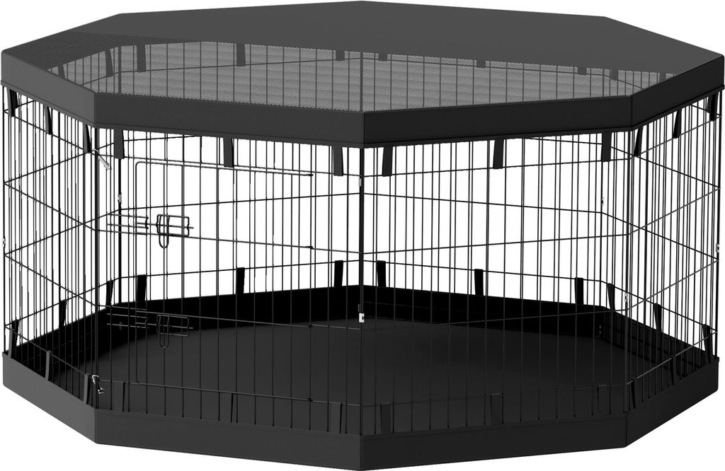 Yakimz Welpenlaufstall Mit Dach Mit Schloss Freigehege Welpenauslauf schwarz Laufstall