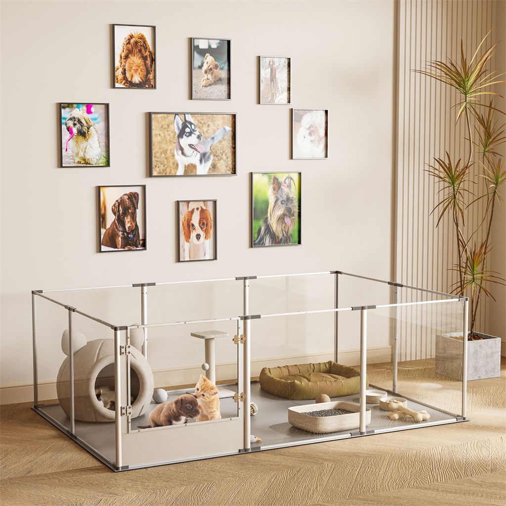 WISFOR Welpenauslauf Modern, 180x120x61cm, DIY Welpenlaufstall 10-teilig aus Acryl, Freilaufgehege Freigehege mit Tür, Welpengitter für Hunde, Hasen