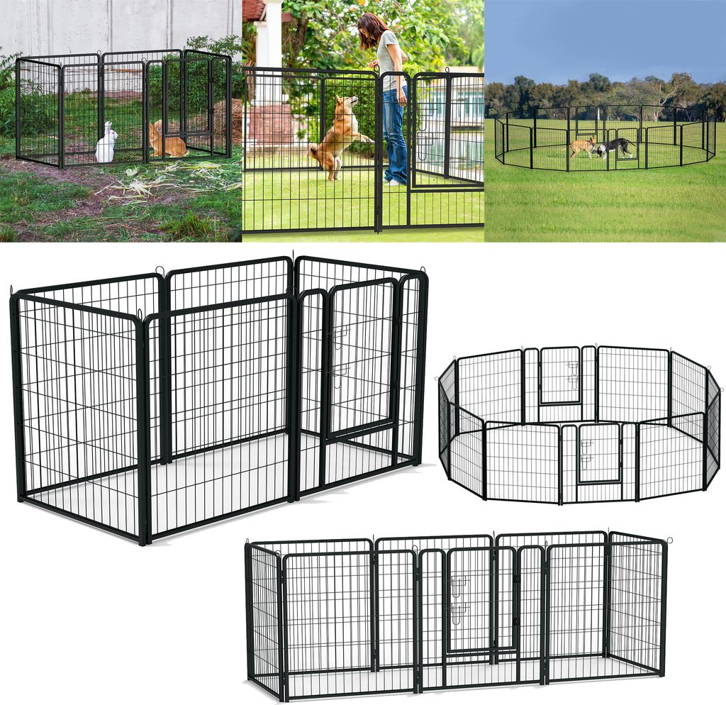 12-teilig Welpenauslauf 60cm Hoch,Hundelaufstall mit Türen,Faltbares Kleintiergehege,Automatische Verriegelung,Freigehege für Garten, für Hunde,...