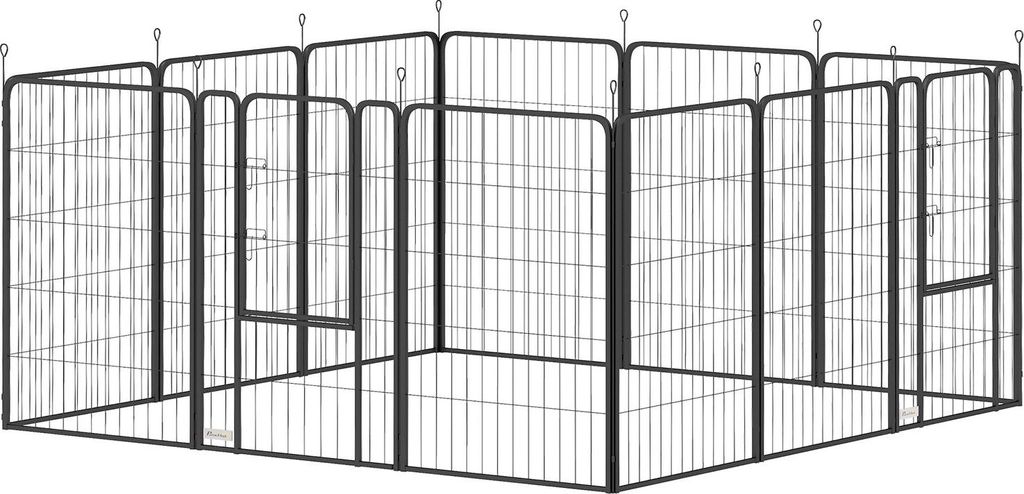 PawHut Welpenauslauf, Welpenlaufstall, Freigehege für Große, Mittlere, Kleine Hunde, Kleintierauslauf, DIY Welpengehege mit zwei Türen, Stahl, G...