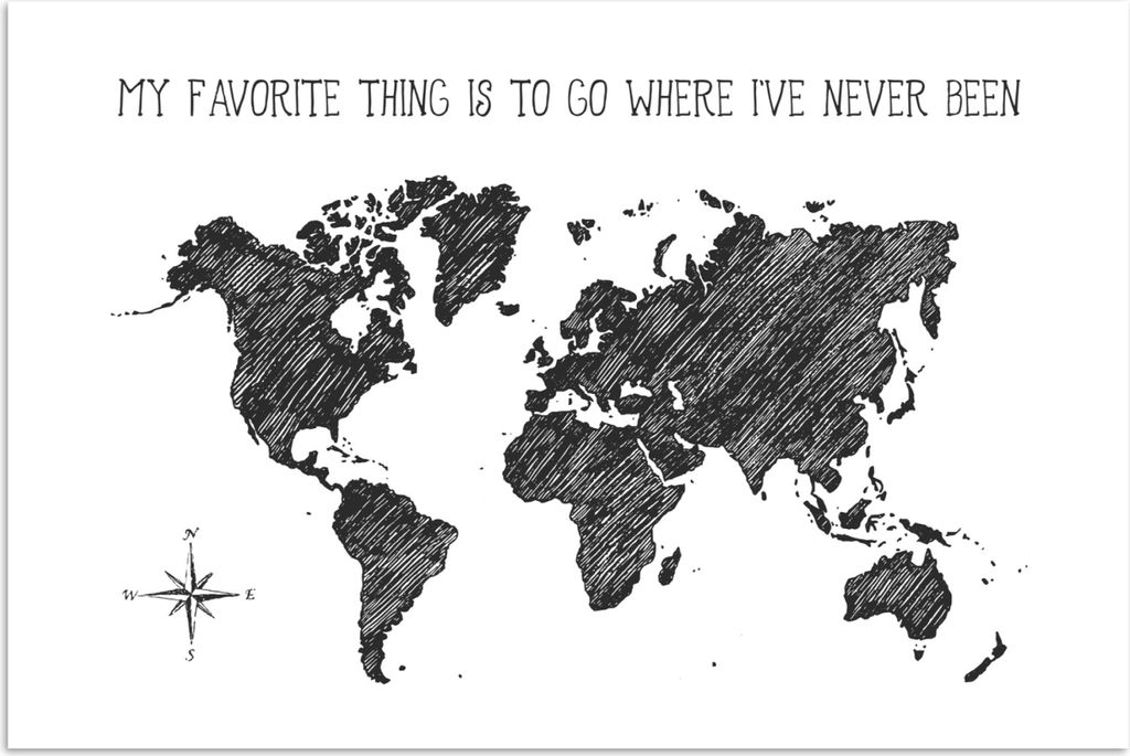 MuchoWow Poster Weltkarte - Schwarz - Weiß - Zitat 120x80 cm - Bilder