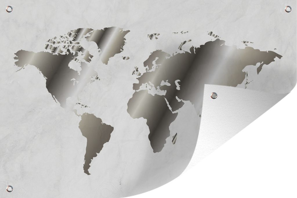 MuchoWow 120x80 cm Outdoor-Poster Gartendeko Sichtschutz Garten Poster für den Garten Weltkarte - Schwarz und weiß - Marmor