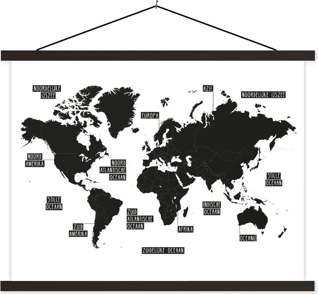 MuchoWow Textilposter Weltkarte - Schwarz und weiß 60x45 cm mit schwarzem Rahmen - Poster Schlafzimmer