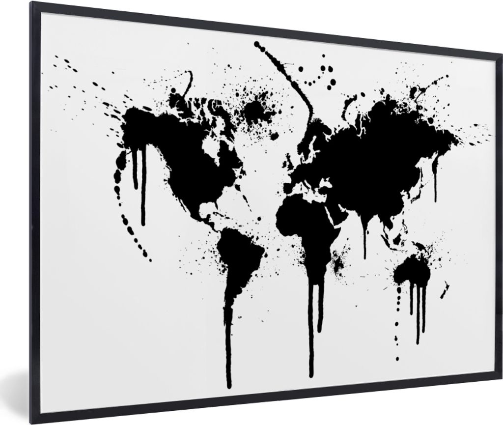 MuchoWow MuchoWow Gerahmtes Poster Weltkarte - Schwarz und weiß 90x60 cm - Poster mit zchwarzem Bilderrahmen - Wanddekoration - Fotos