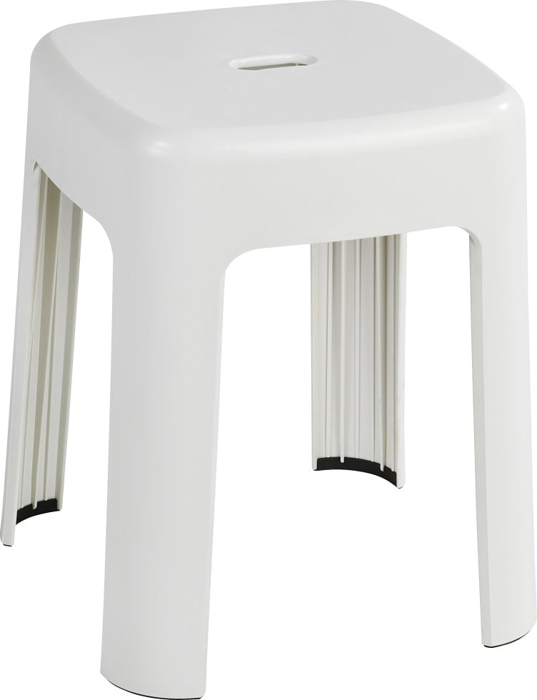 Wenko Badhocker mit drehbarem Sitz Metall Aluminium Weiß 35 x 35 x 41 –5 - 59 cm – 35 x 35 x 41,5 - 59 cm