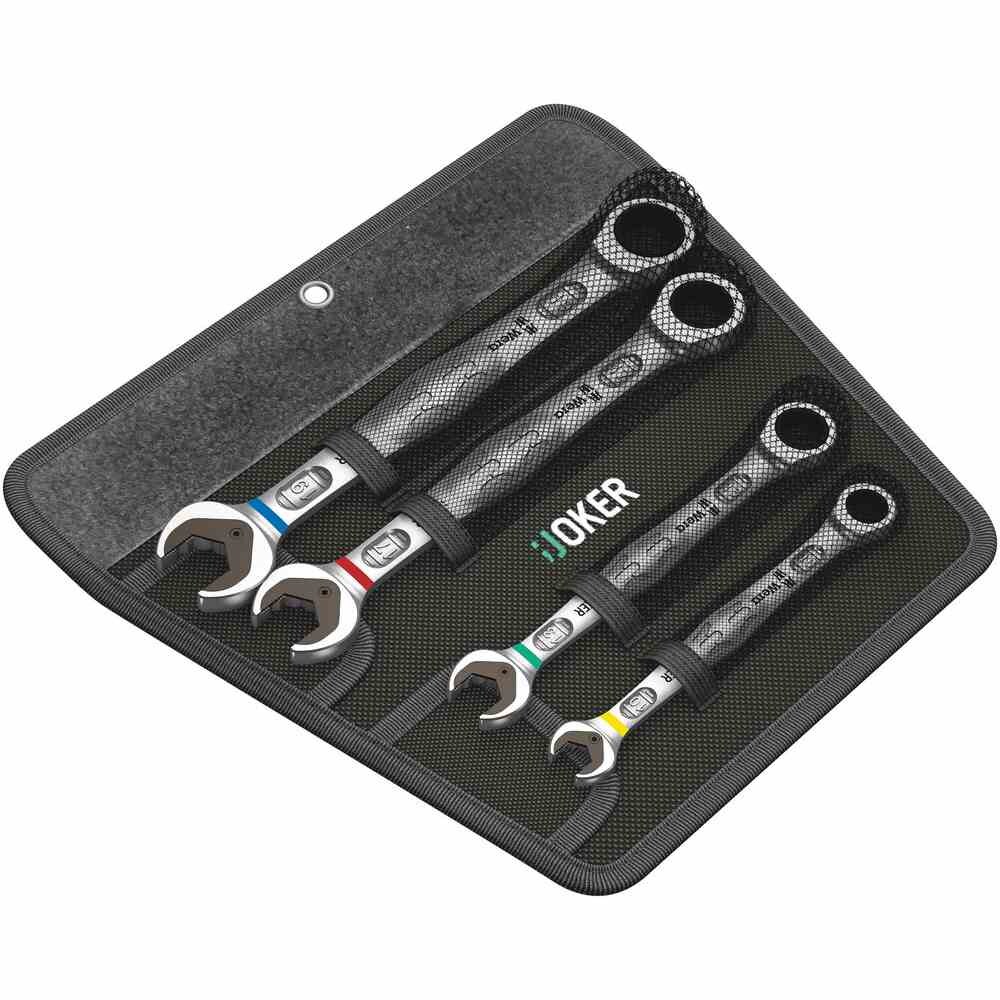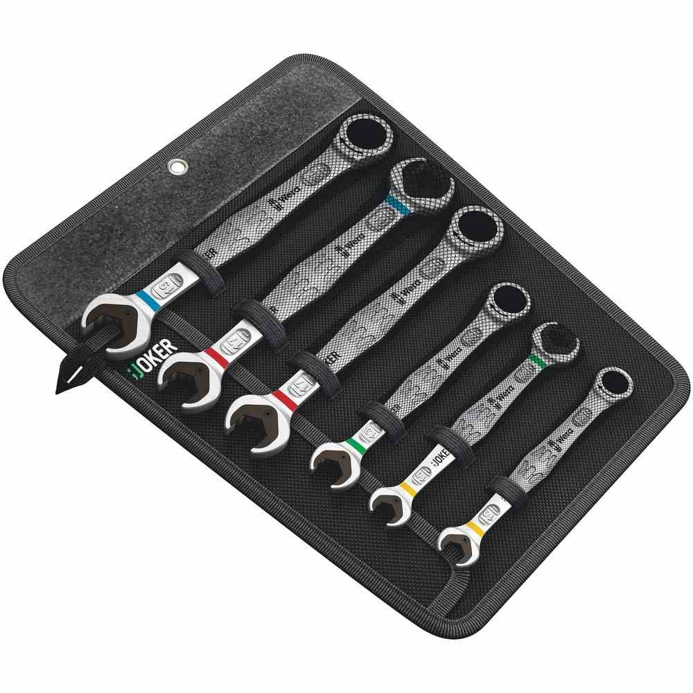 WERA 6-teiliger Satz in robuster Tasche, 4 Schlüssel mit Maul- und Ratschenende,