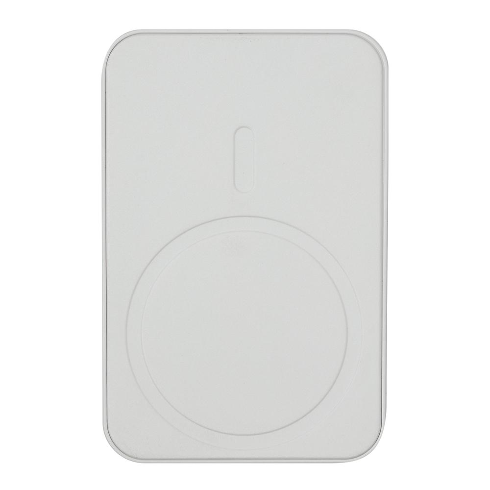 Werbeartikel 5.000mAh 5W Wireless Powerbank aus RCS recyceltem Kunststoff – weiß – mit Logo bedruckt