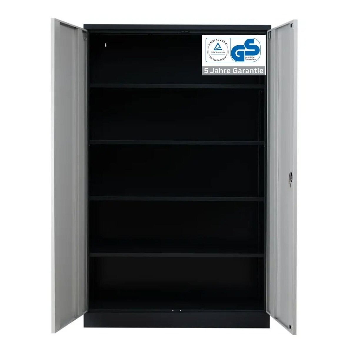 Stahlschrank BEE mit 4 lackierten Fachböden | HxBxT 195x92x60cm | Korpusfarbe Schwarz, Frontfarbe Lichtgrau | Werkstattschrank Werkzeugschrank Akt...