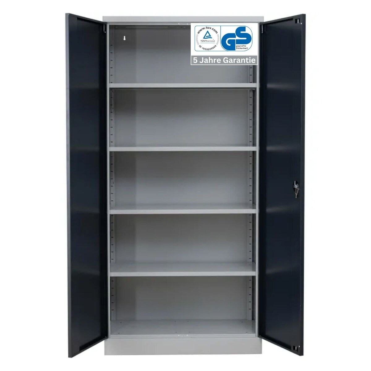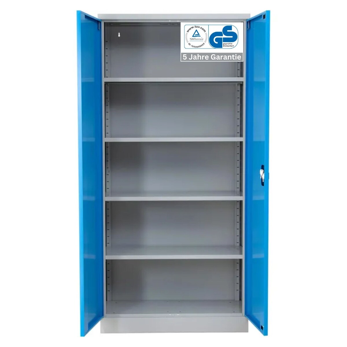 Stahlschrank BEE mit 5 verzinkten Fachböden | HxBxT 195x92x50cm | Korpusfarbe Lichtgrau, Frontfarbe Enzianblau | Werkstattschrank Werkzeugschrank ...
