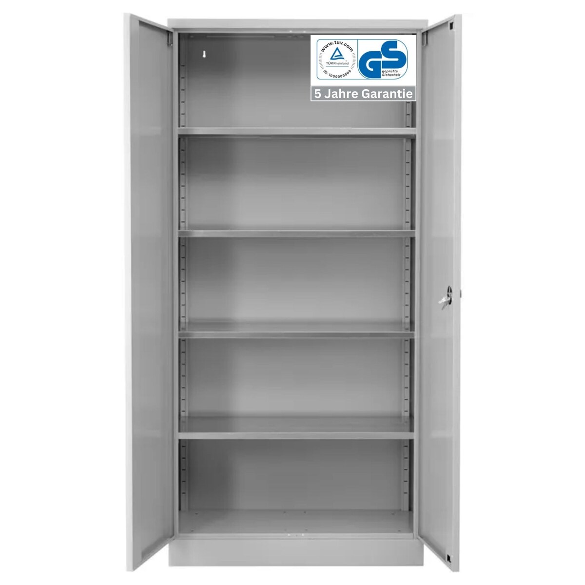 Stahlschrank BEE mit 4 lackierten Fachböden | HxBxT 195x92x42cm | Korpusfarbe Lichtgrau, Frontfarbe Lichtgrau | Werkstattschrank Werkzeugschrank A...