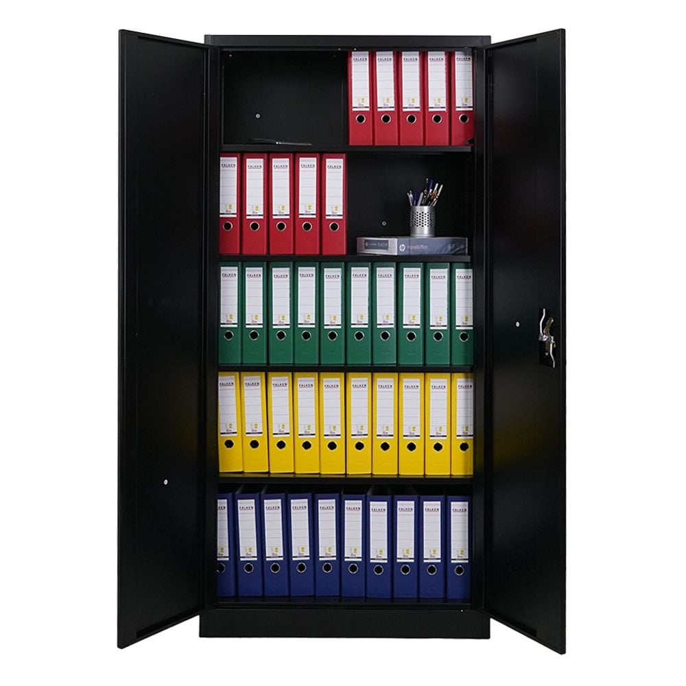 PROREGAL Flügeltürenschrank ELEPHANT Metall Aktenschrank abschließbar 180x80x40cm Stahl 4 Ebenen Stahlschrank Schwarz Werkstattschrank