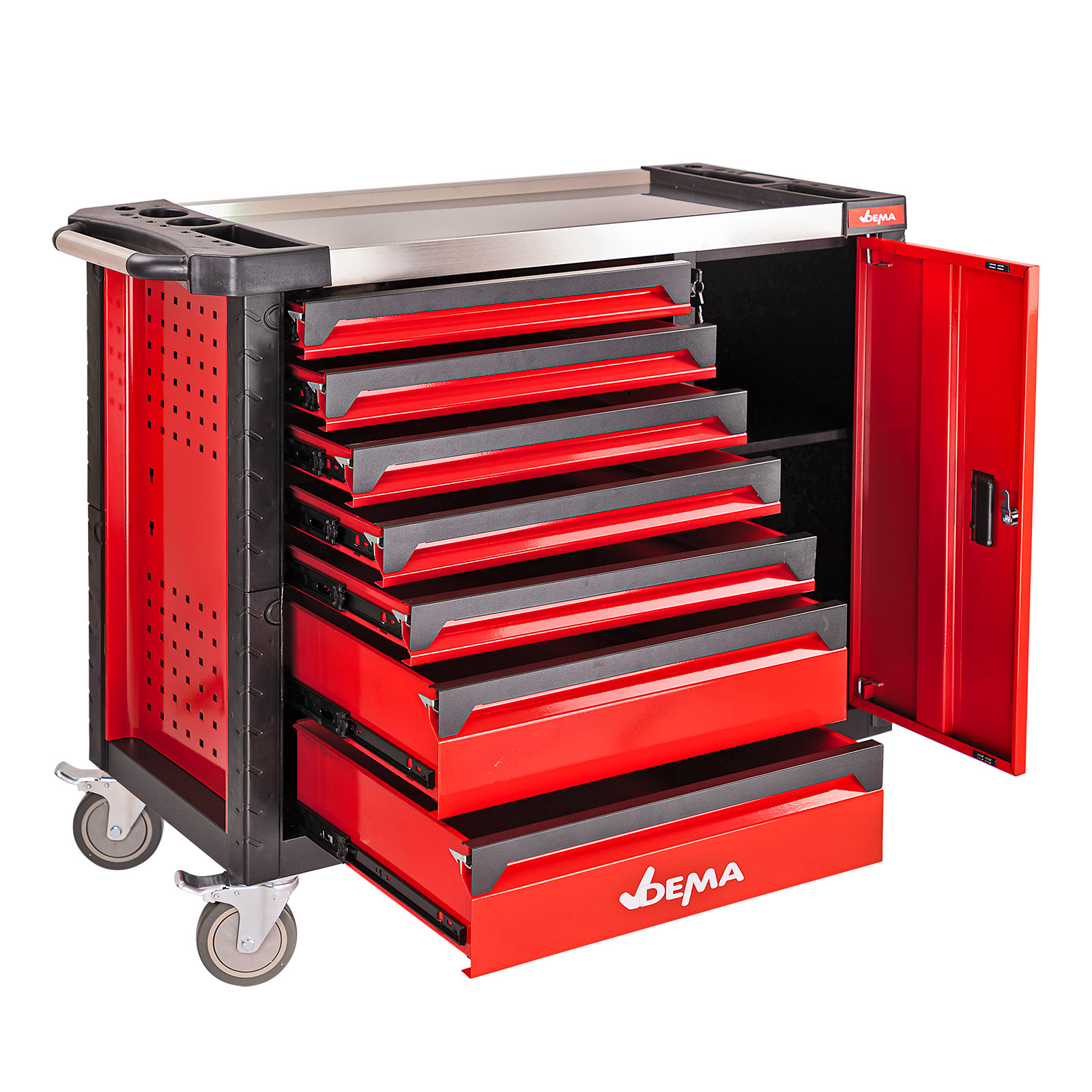 Werkstattwagen Sergio 7+, 7 Schubladen, pulverbeschichtet, breite Lenkrollen mit Bremsen, Arbeitsplatte, Zylinderschloss