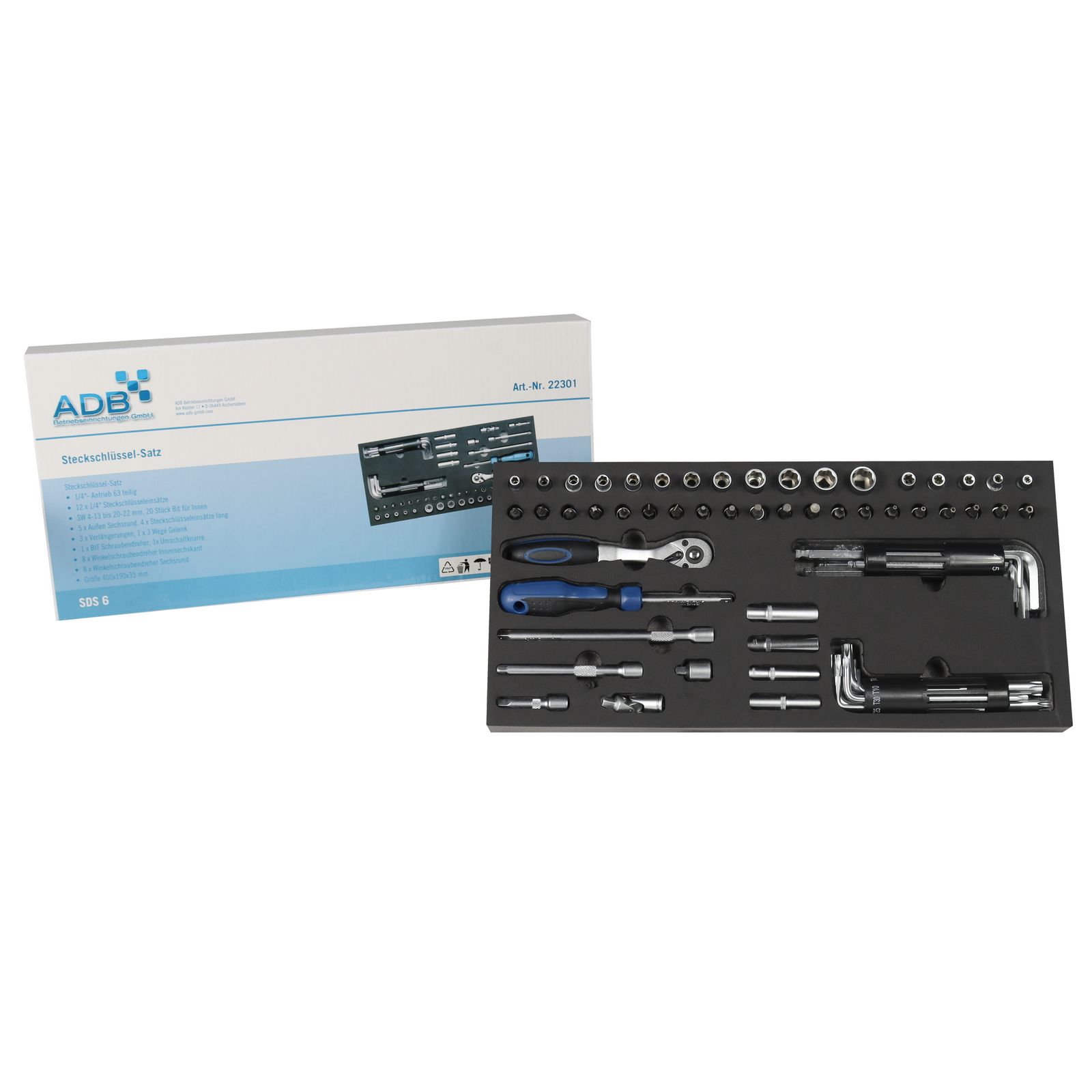 ADB Werkzeugeinlage 22301 Werkstattwagen Schubladen Werkzeug Einlage Steckschlüssel-Satz 63-teilig Garnitur