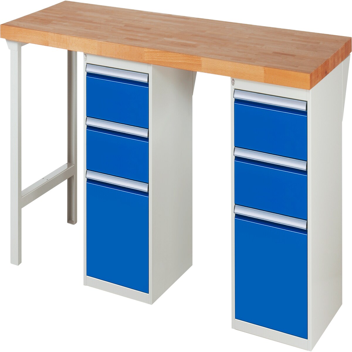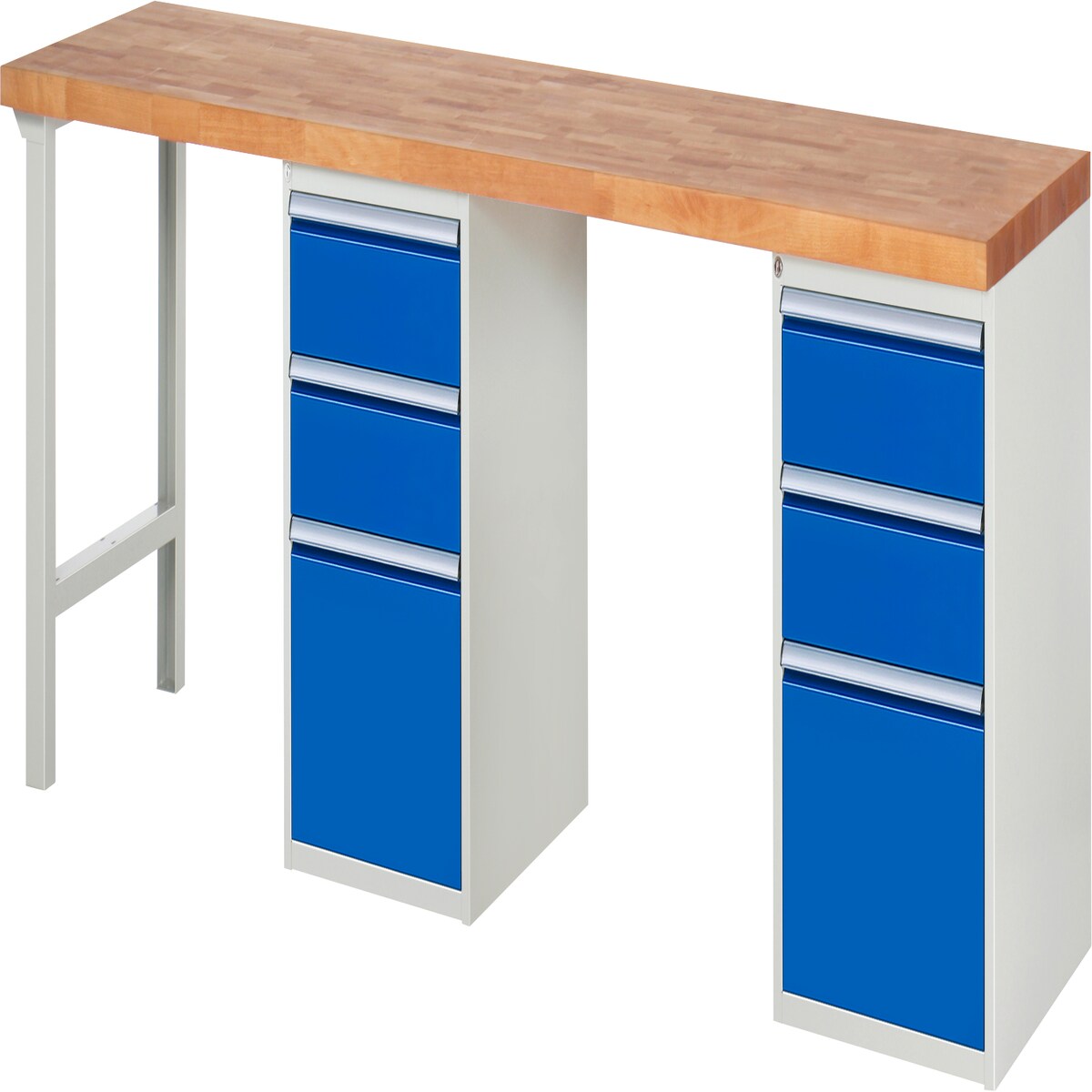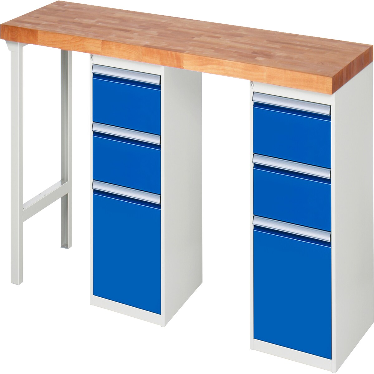 PROREGAL Werkbank Serie 7000 - Modell 7515 | HxBxT 84x125x90cm | 6x Schublade | Schubladenmaße 3x90 + 3x150mm | Lichtgrau | Arbeitstisch Werktisch