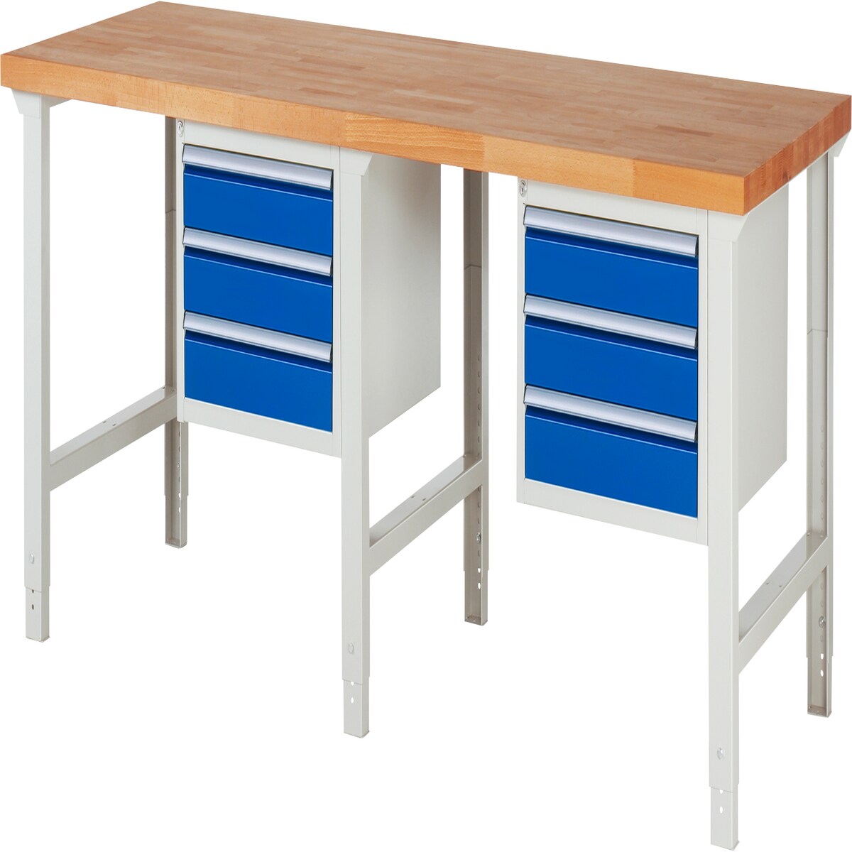 PROREGAL Werkbank Serie 7000 - Modell 7516 | HxBxT 84x125x90cm | 6x Schublade | Schubladenmaße 6x120mm | Lichtgrau | Arbeitstisch Werktisch