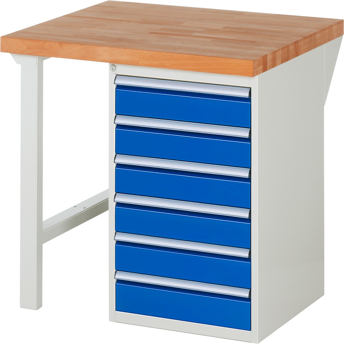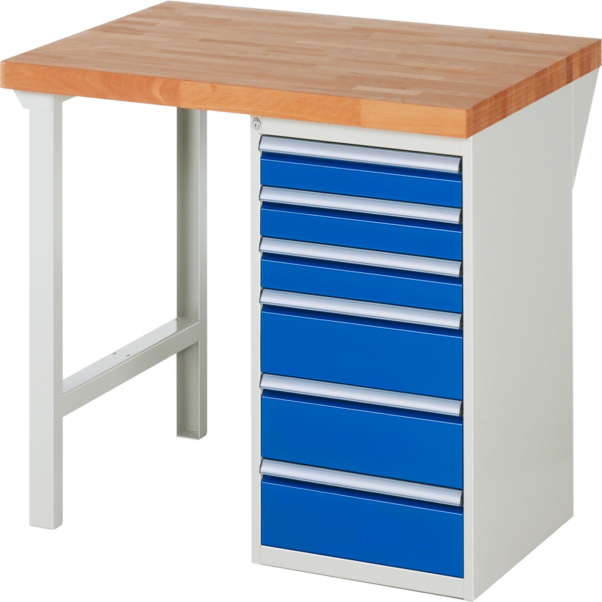 PROREGAL Werkbank Serie 7000 - Modell 7516 | HxBxT 89x100x90cm | 6x Schublade | Schubladenmaße 6x120mm | Lichtgrau | Arbeitstisch Werktisch