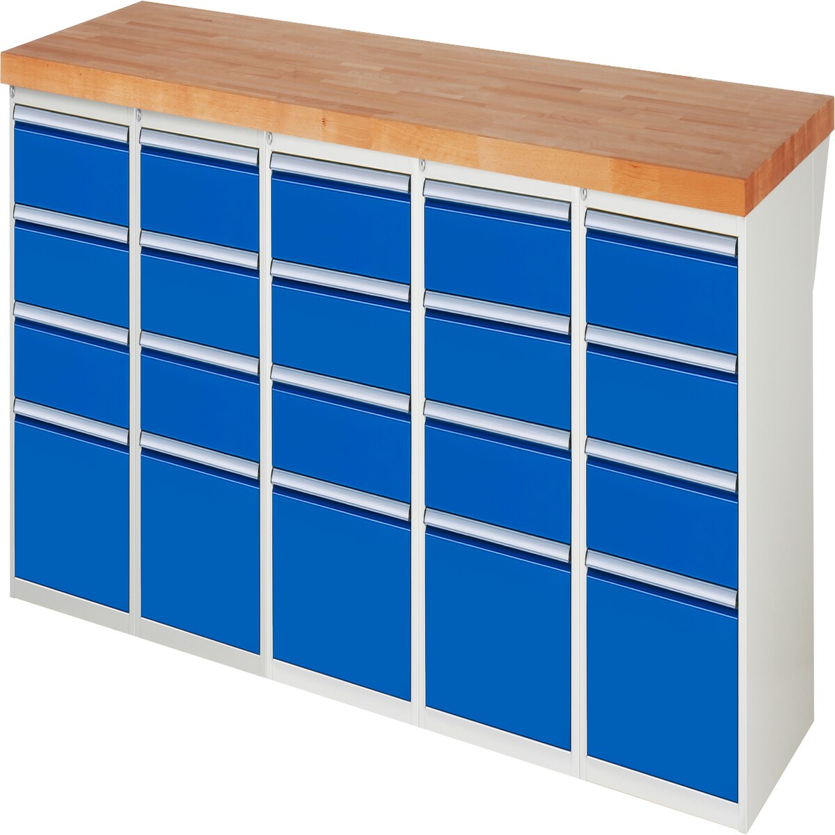 PROREGAL Werkbank Serie 7000 - Modell 7510 | HxBxT 89x300x90cm | 20x Schublade | Schubladenmaße 15x150 + 5x270mm | Lichtgrau | Arbeitstisch Werktisch