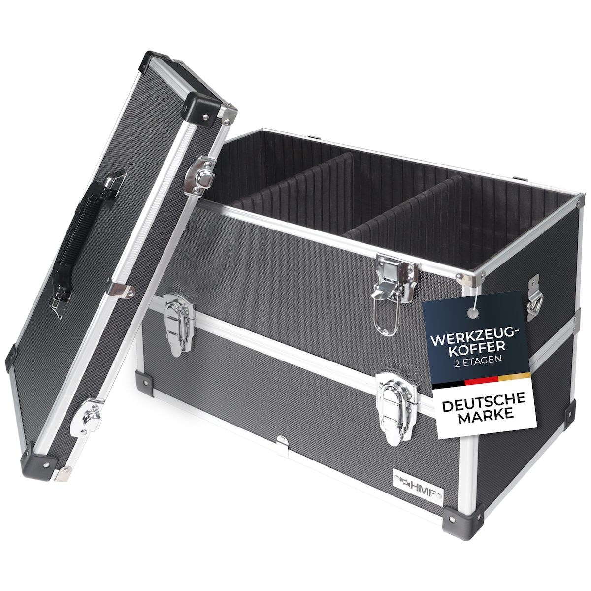 HMF 14660-02 Alu Werkzeugkoffer leer, 2 Etagen, 44 x 32,5 x 24 cm, Schwarz