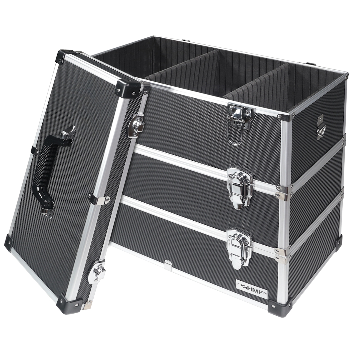HMF 14661-02 Alu Werkzeugkoffer leer, 3 Etagen, 44 x 45 x 24 cm, Schwarz