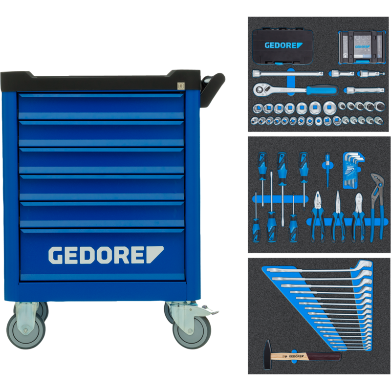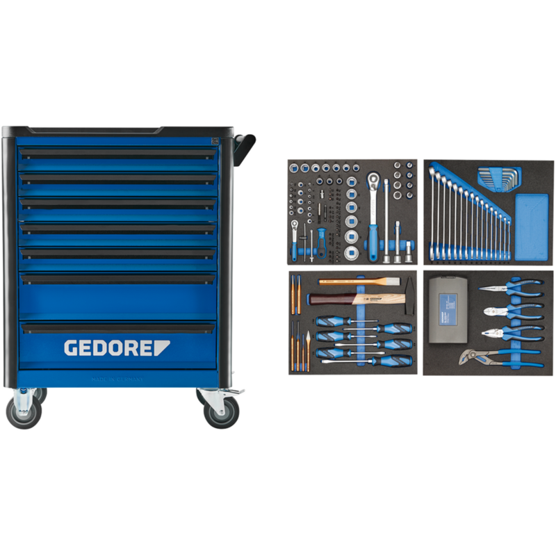 GEDORE Werkzeugwagen 1500 ES-02-2004 0620, blau/schwarz, inkl. 207 Werkzeuge