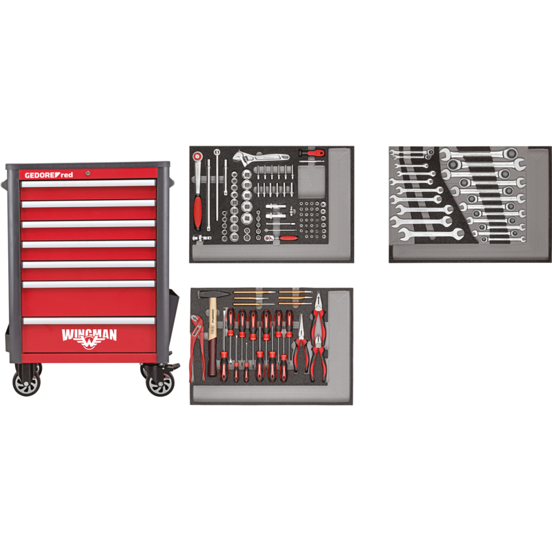 GEDORE red Werkzeugwagen WINGMAN, rot, inkl. 129 Werkzeuge