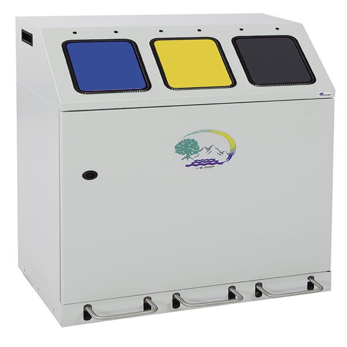 ADB Mülltrenner 3x 120L Abfallsammler, Wertstoffsammler, lichtgrau (RAL 7035), selbstschließend, feuerhemmend, abschließbar, 1220x1200x450 mm