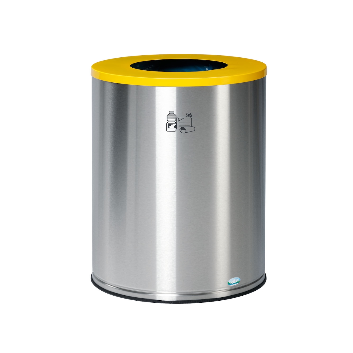 PROREGAL Selbstlöschender Wertstoffsammler rund | 43 Liter, HxBxT 60x32x32cm | Verzinkter Stahl | Silber-Gelb | Mülleimer Abfalleimer