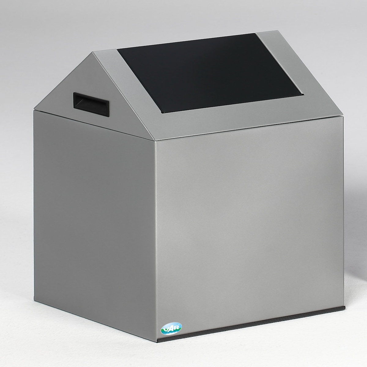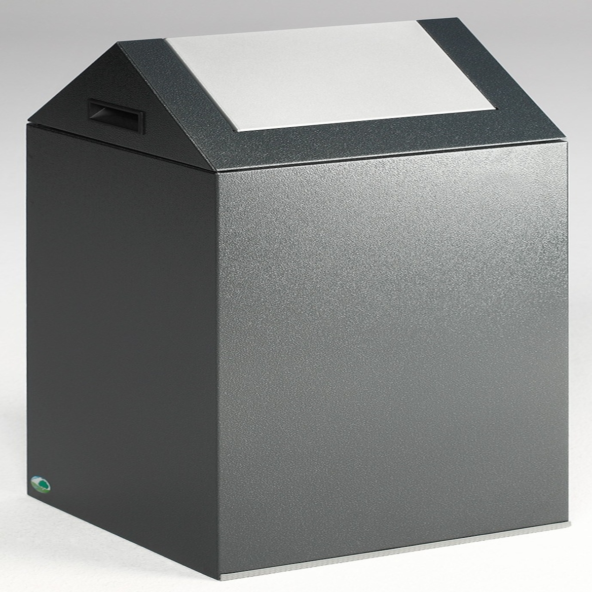 Selbstlöschender Wertstoffsammler spitz mit Einwurfklappe | 43 Liter, HxBxT 60x32x32cm | Verzinkter Stahl | Silber-Anthrazit