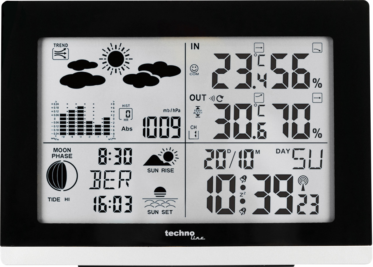 Technoline WS6520 Wetterstation | DCF77 Funkempfang | Wettervorhersage | Mondphasenanzeige | Gezeitenanzeige