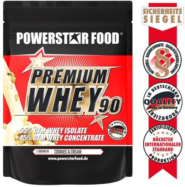 Powerstar Food PREMIUM WHEY 90 Protein Shake, 850 g Beutel, Cookies & Cream