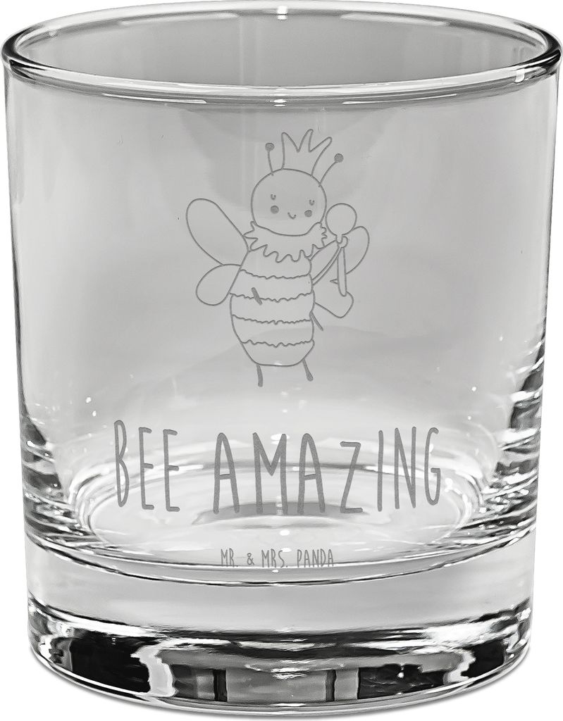Mr. & Mrs. Panda Tumbler Biene König - Transparent - Geschenk, Gravur Whiskyglas, Whiskeyglas, Whiskey Becher, Glas