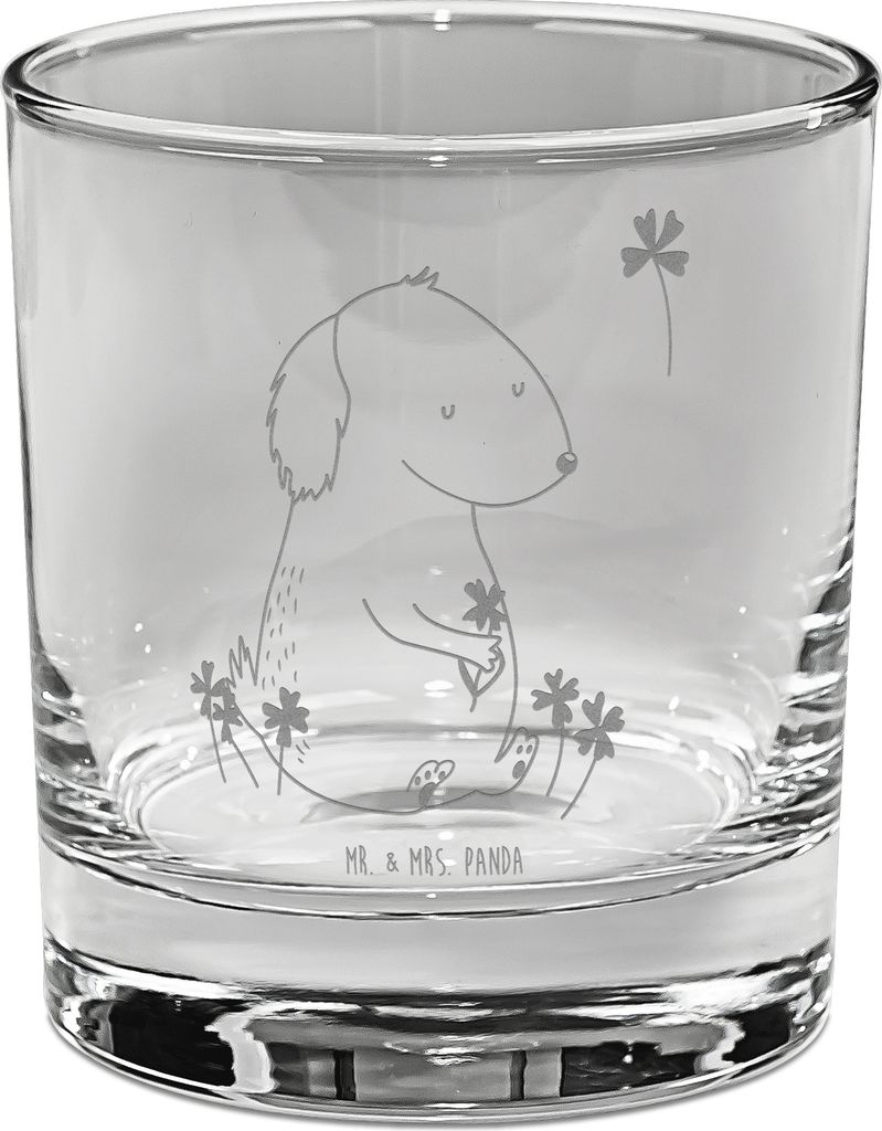 Mr. & Mrs. Panda Whiskyglas Hund Kleeblatt - Transparent - Geschenk, Glück, Whiskeyglas, Gravur, Haustier, Viel, Tumbler, Whiskey, Glas