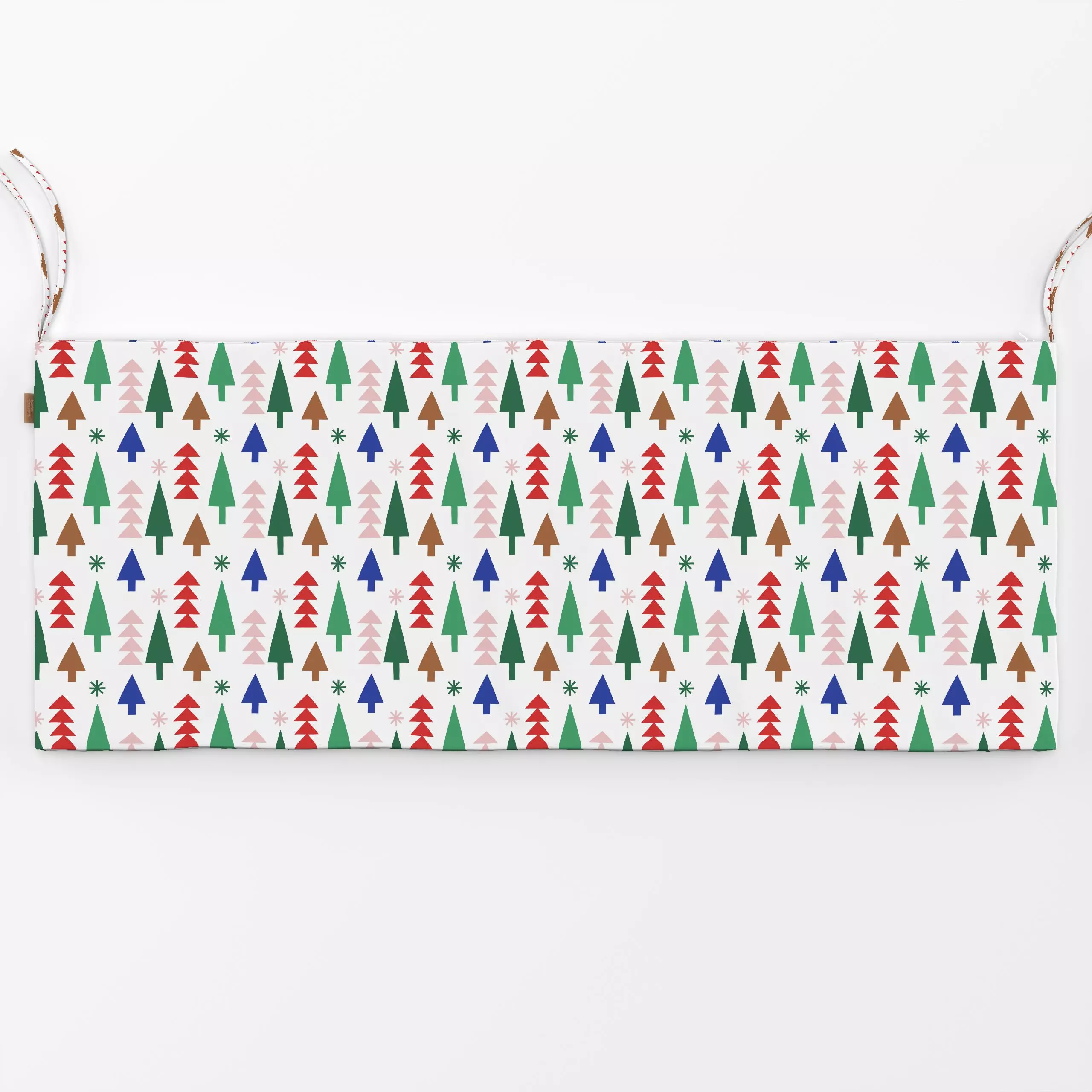 Bankauflage Colorful Christmas Trees White - Weihnachten, Symbole & Muster - von „Lisa Jasmin Bauer"; Wald, Weihnachtsbaum, ...