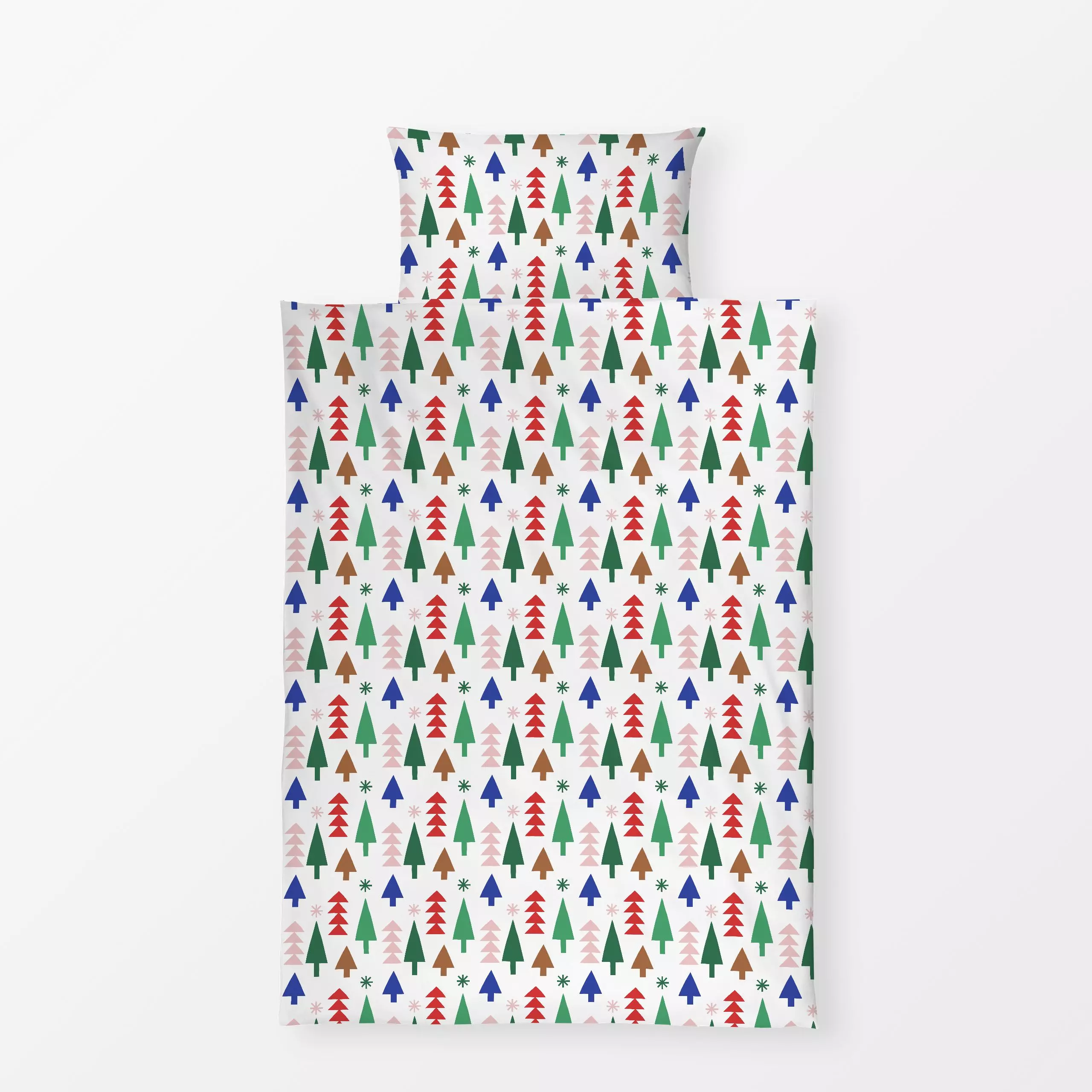 Bettwäsche Colorful Christmas Trees White - Weihnachten, Symbole & Muster - von „Lisa Jasmin Bauer"; Wald, Weihnachtsbaum, W...