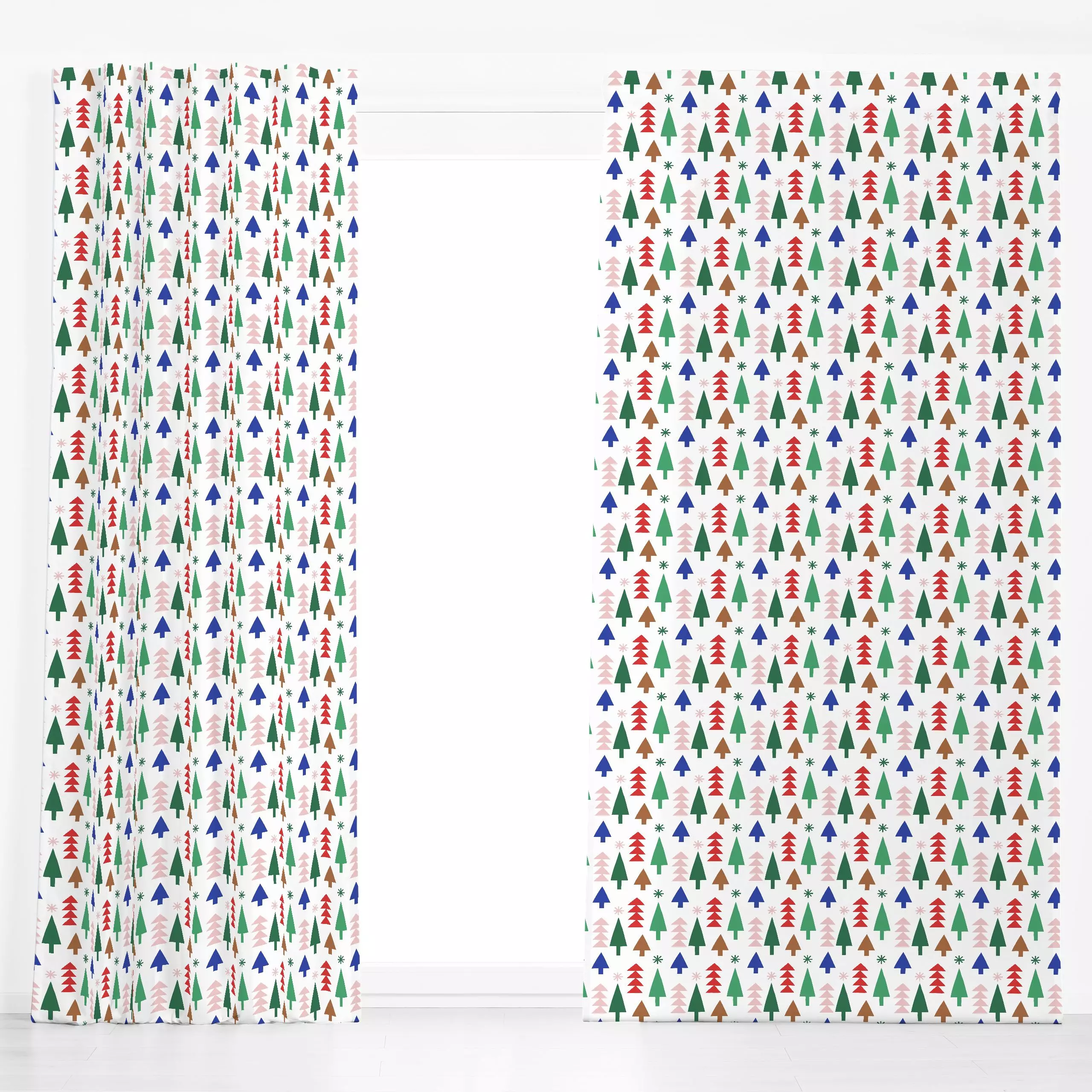 Dekovorhang Colorful Christmas Trees White - Weihnachten, Symbole & Muster - von „Lisa Jasmin Bauer"; Wald, Weihnachtsbaum, ...