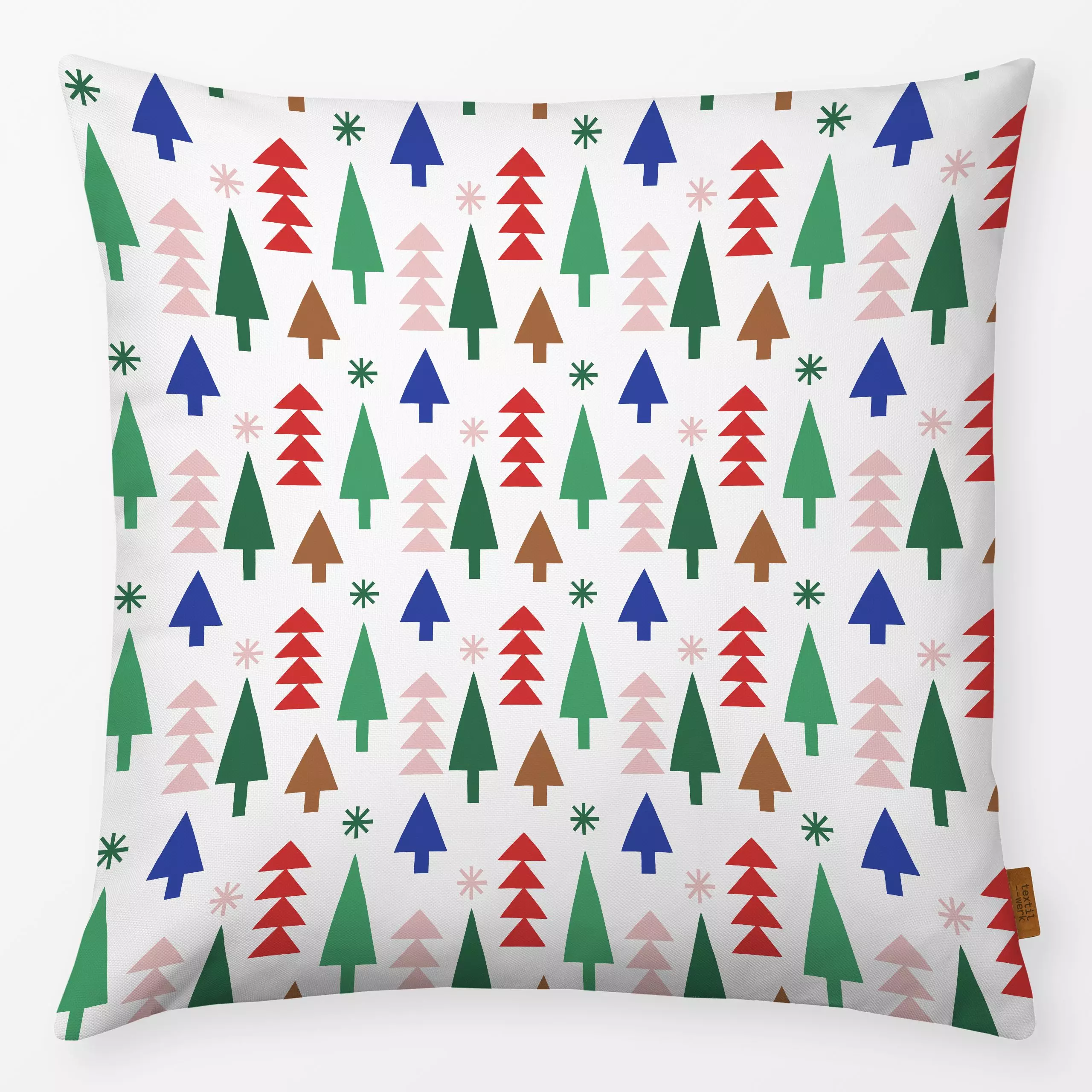 Kissen Colorful Christmas Trees White - Weihnachten, Symbole & Muster - von „Lisa Jasmin Bauer"; Wald, Weihnachtsbaum, Weihn...