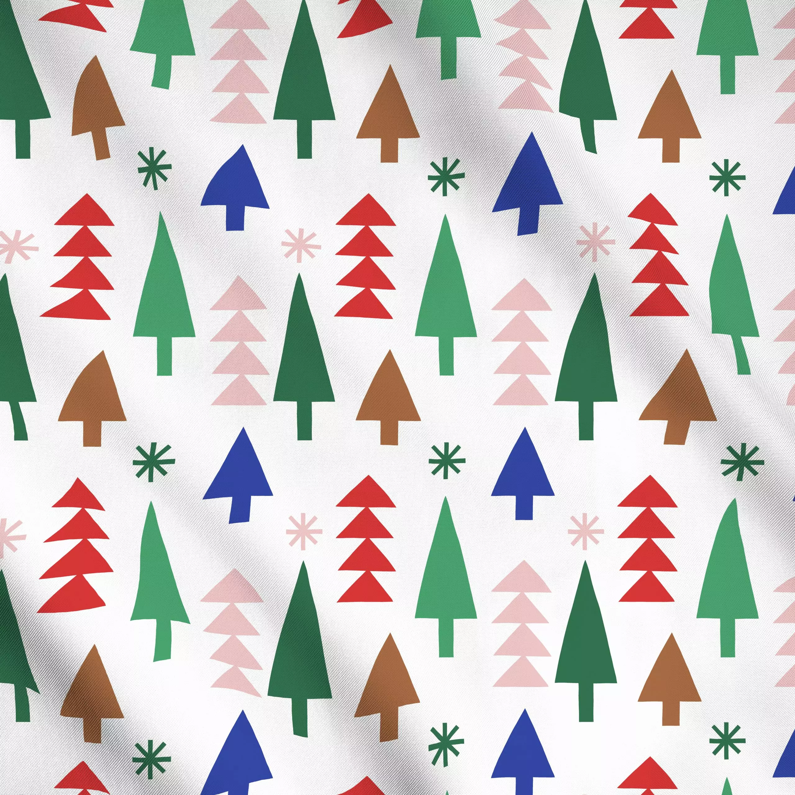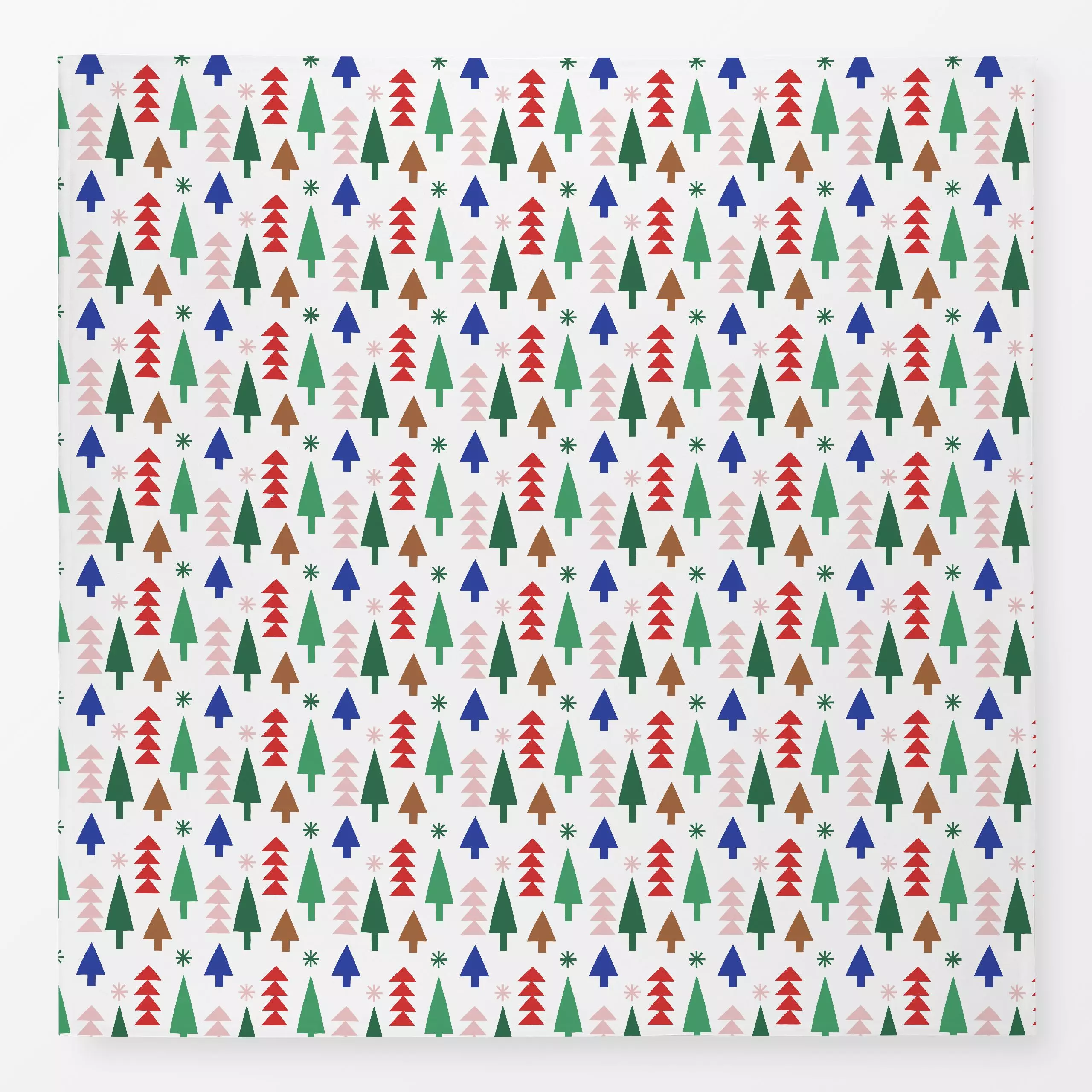 Tischdecke Colorful Christmas Trees White - Weihnachten, Symbole & Muster - von „Lisa Jasmin Bauer"; Wald, Weihnachtsbaum, W...