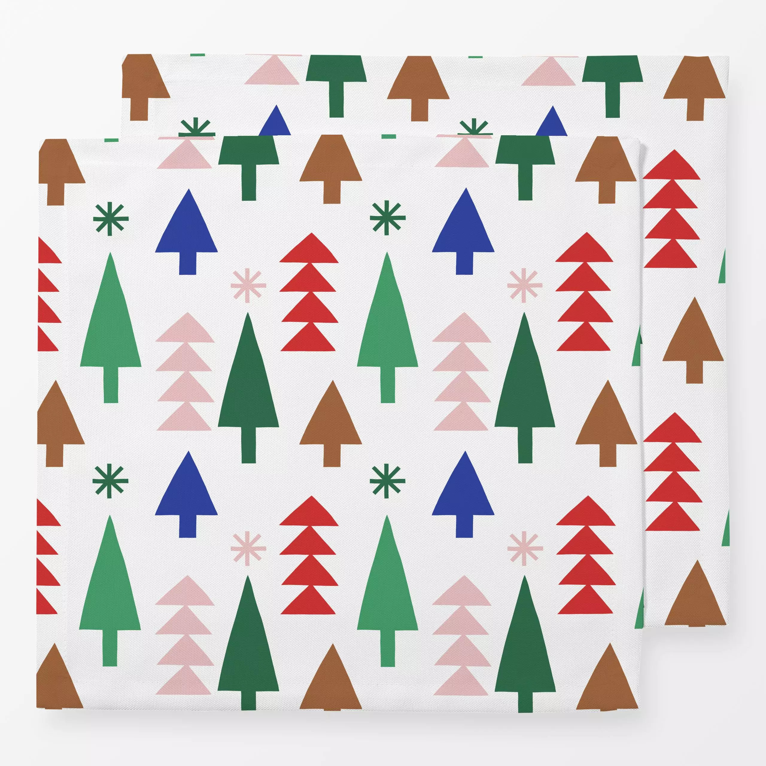 Servietten Colorful Christmas Trees White - Weihnachten, Symbole & Muster - von „Lisa Jasmin Bauer"; Wald, Weihnachtsbaum, W...
