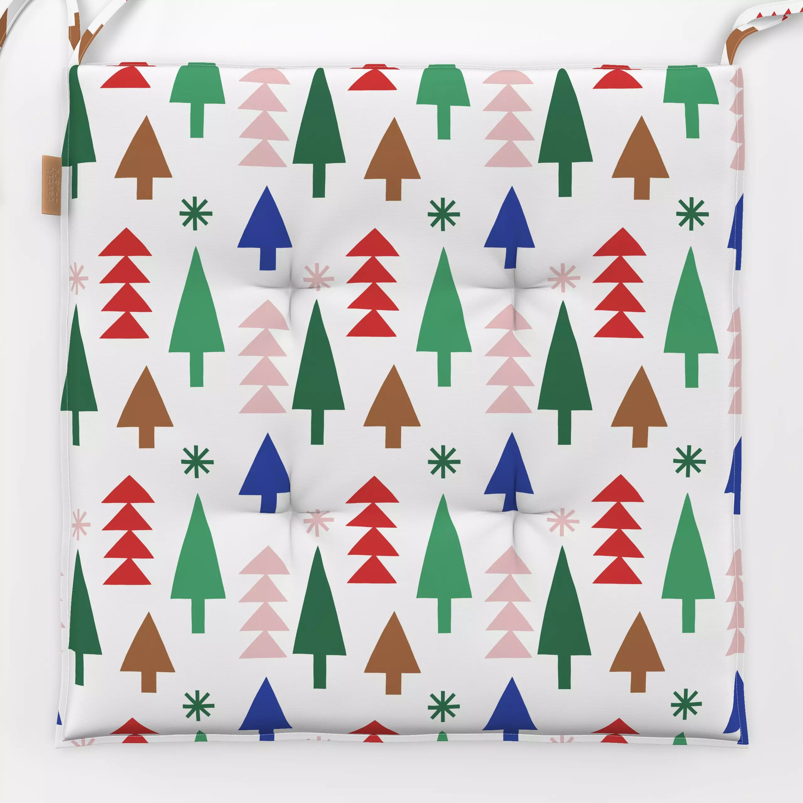 Sitzkissen Colorful Christmas Trees White - Weihnachten, Symbole & Muster - von „Lisa Jasmin Bauer"; Wald, Weihnachtsbaum, W...