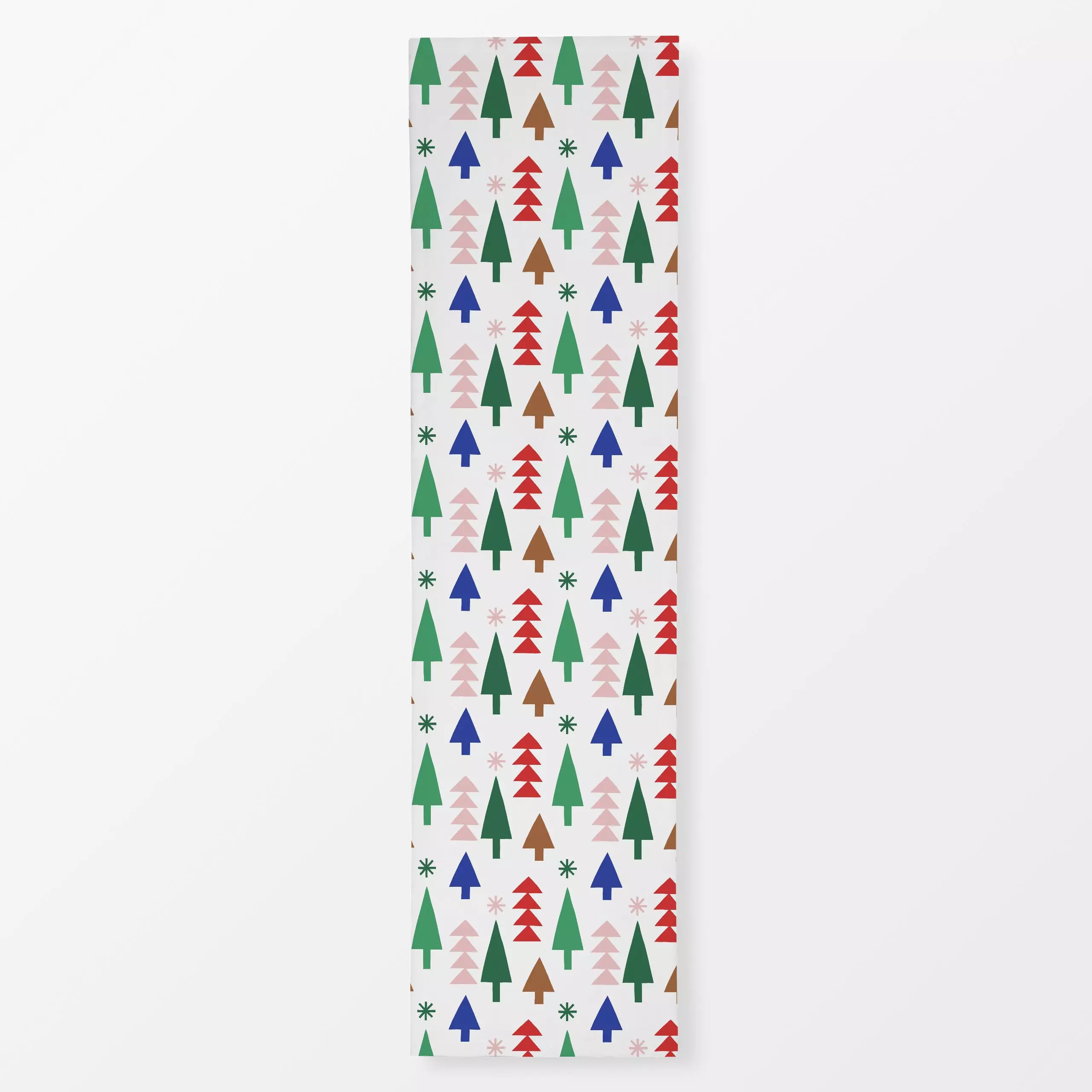 Tischläufer Colorful Christmas Trees White - Weihnachten, Symbole & Muster - von „Lisa Jasmin Bauer"; Wald, Weihnachtsbaum, ...