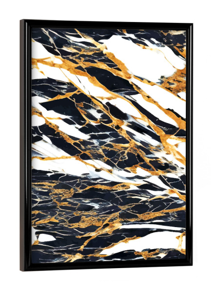 Poster mit Rahmen schwarz "Painted Black Gold & White Marble" artboxONE - Abstrakt