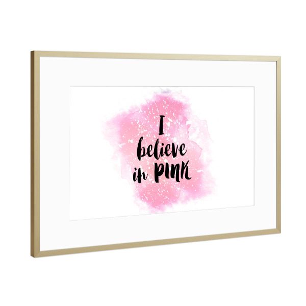 Poster mit Rahmen Gold "I believe in PINK" artboxONE - Liebe - Pink,Love,Paint,Stain,White,Watercolor