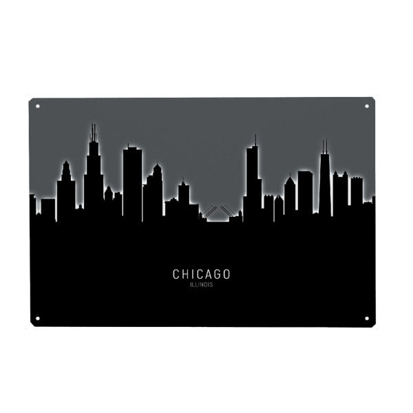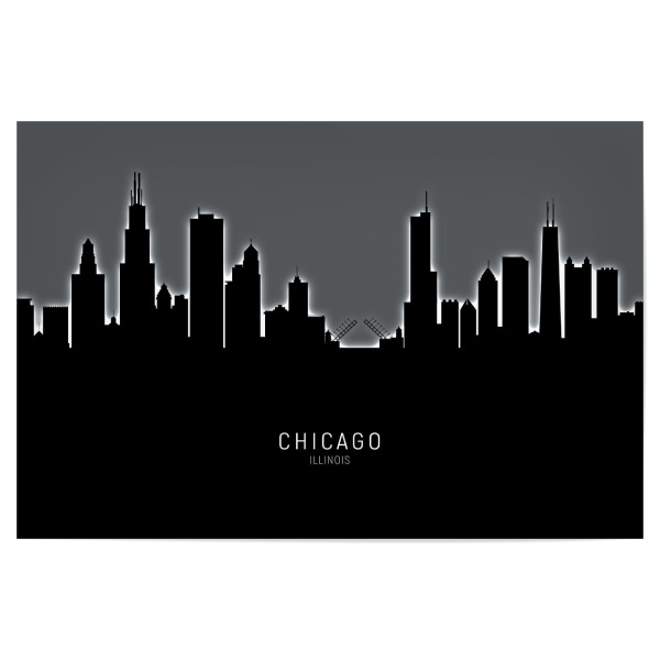 Poster "Chicago Skyline Glow White" artboxONE - Schwarzweiß,Städte / Chicago - Chicago,Illinois,Skyline,Cityscape,Painting,Watercolour,Stadtbild