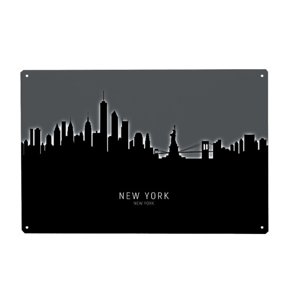 Holzbild "New York Skyline Glow White" artboxONE - Städte / New York,Schwarzweiß - New york,Skyline,Cityscape,Painting,Watercolour,Stadtbild